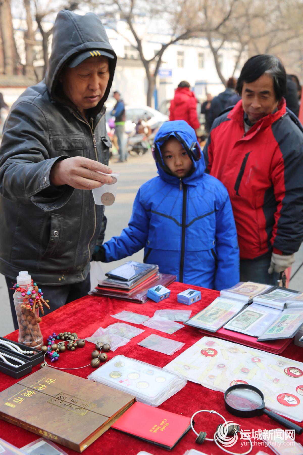 1月3日,元旦小长假最后一天,位于永济市河东民俗文化街上的古玩市场,几名古钱币爱好者在认真鉴别与选购旧版钱币。