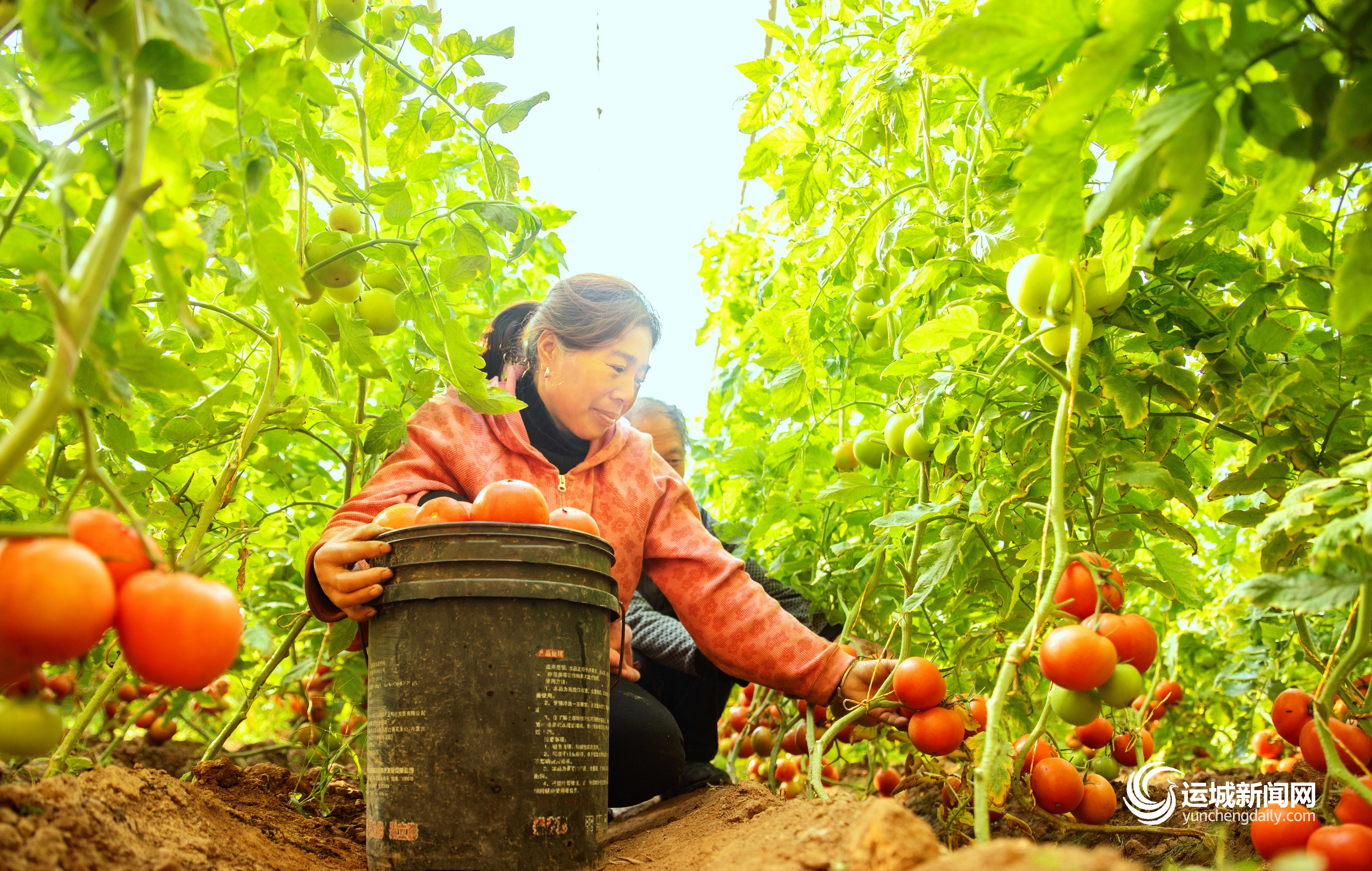 1月6日,夏县南大里乡小王村村民薛王贵在采摘西红柿。
