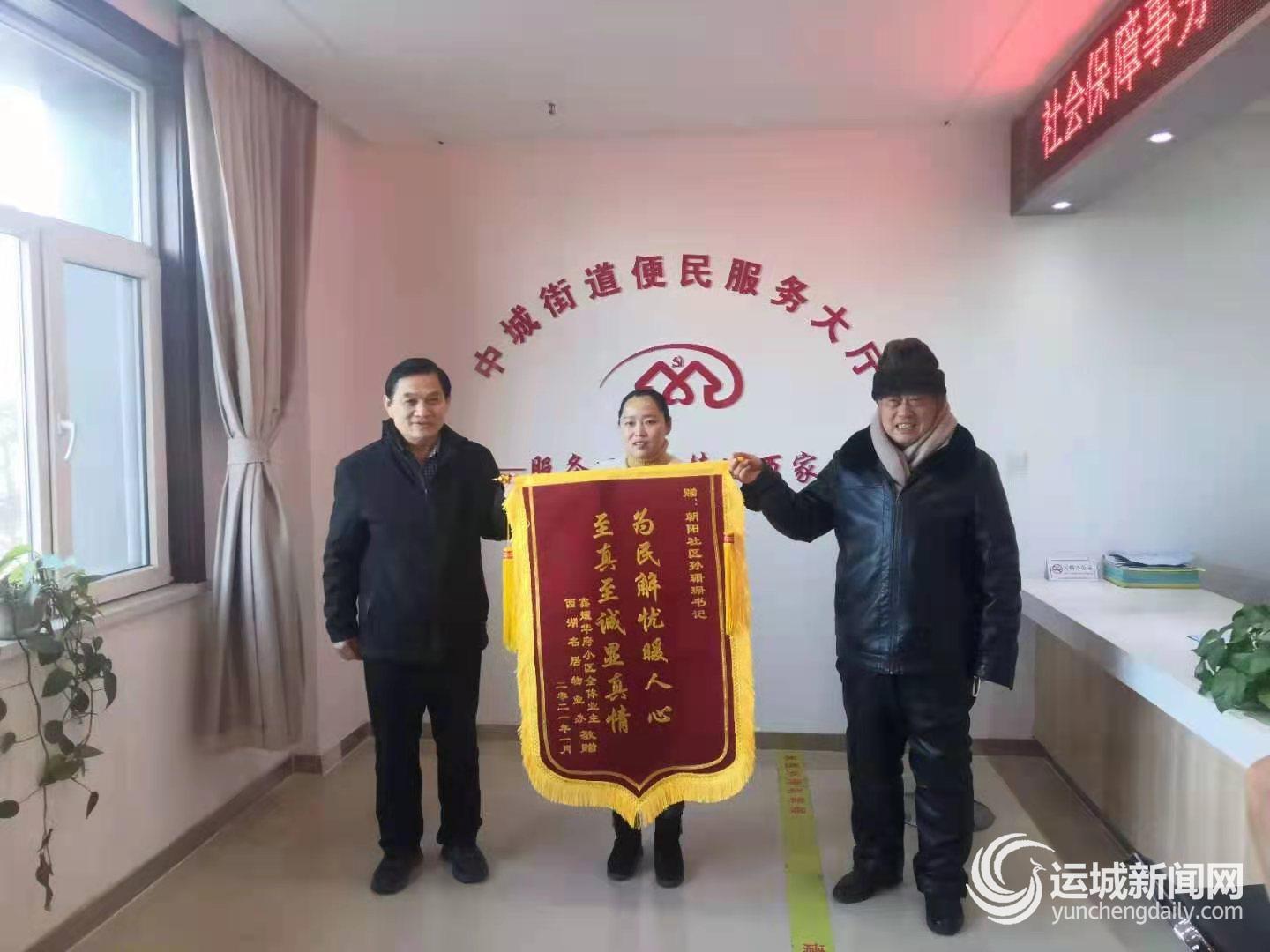 运城晚报讯(记者 崔萌)1月7日,盐湖区中城办鑫耀华府小区和西湖名居小区居民代表,为中城办和朝阳社区分别送来锦旗,感谢他们协调解决小区集中供暖事宜。