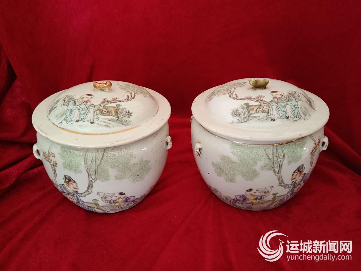 蒲先生介绍,这对粥罐,应该是当时人们的常用器具。旧时,人们将煮好的粥盛入罐内,再将绳子穿过粥罐两边对称分布的四个提纽,可来回提拿。这个粥罐应该是当时文化人家里用的,比较讲究。