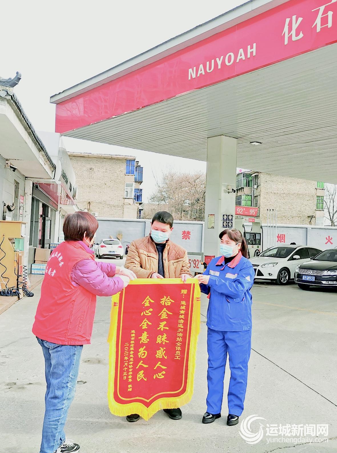 运城晚报讯(记者 赵茜)1月16日,市敬老服务志愿者协会会长梁香草将一面印着“拾金不昧感人心 全心全意为人民”的锦旗,送到盐湖区南城浩远加油站,对该加油站员工常翠红表示感谢。