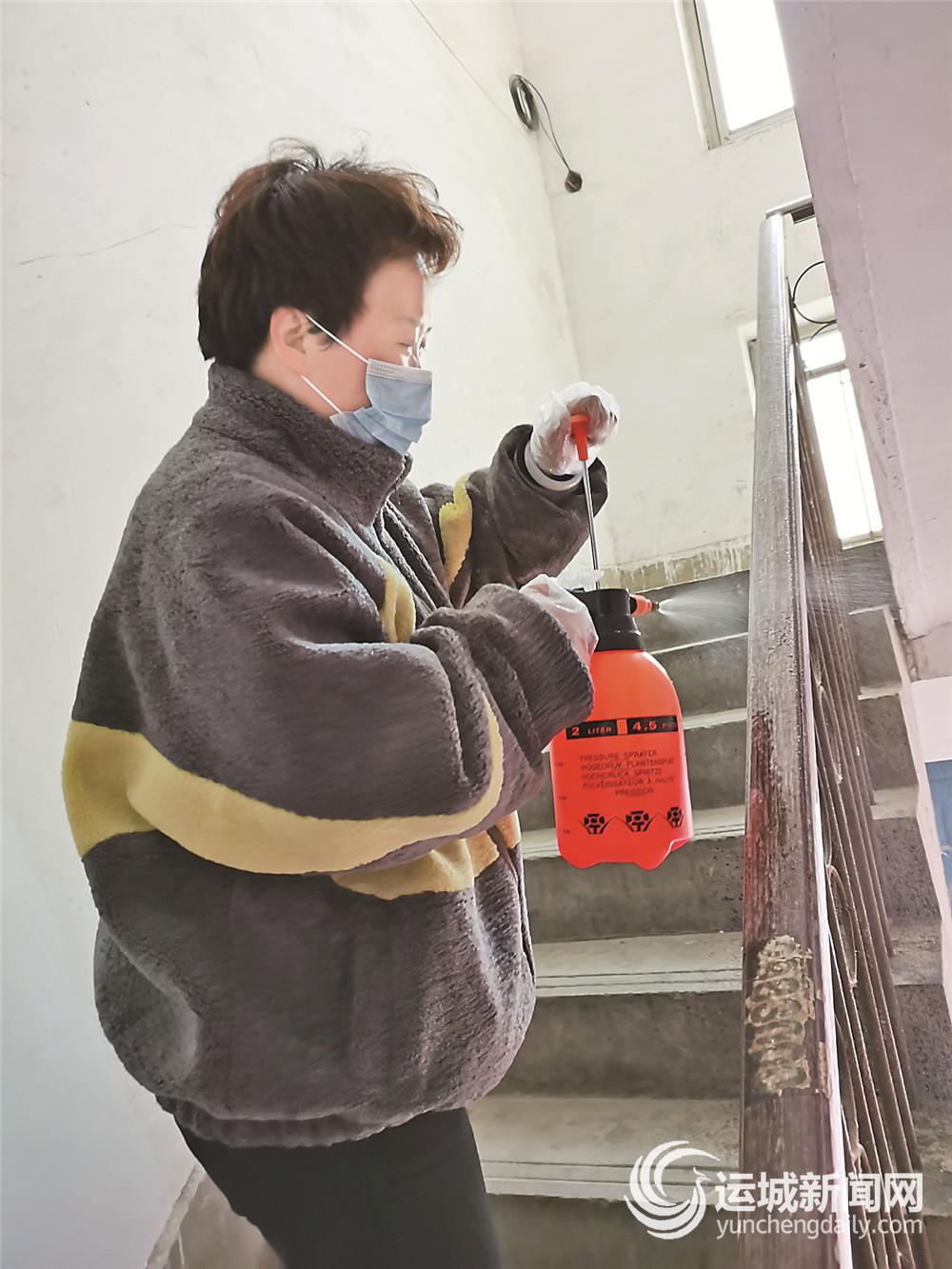 运城晚报讯(记者 樊亚楠)1月19日,盐湖区东城办河东西街社区工作人员对辖区内小区楼道、广场等公共场所进行消毒杀菌,为居民的健康保驾护航。