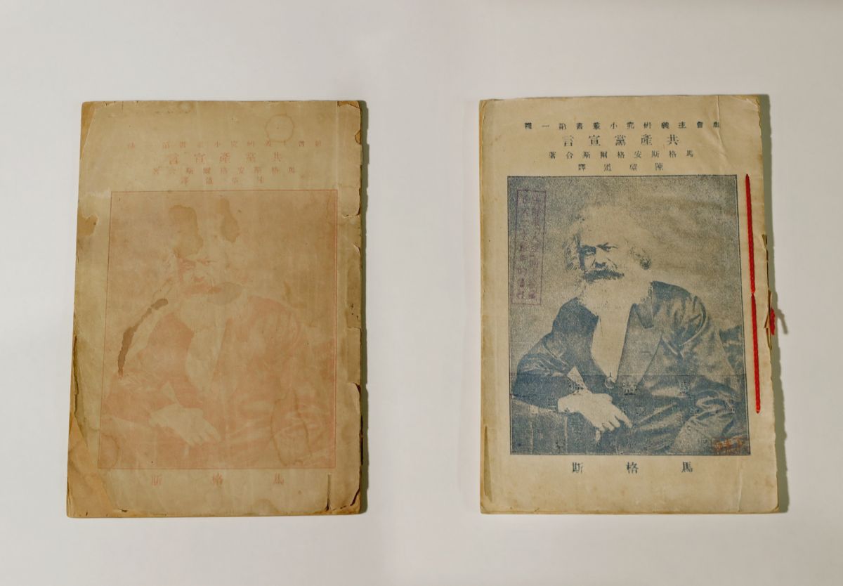 这是在中共一大会址纪念馆拍摄的1920年8月(左)和9月出版的《共产党宣言》中文全译本(2020年6月23日摄)。 新华社记者 刘 颖 摄
