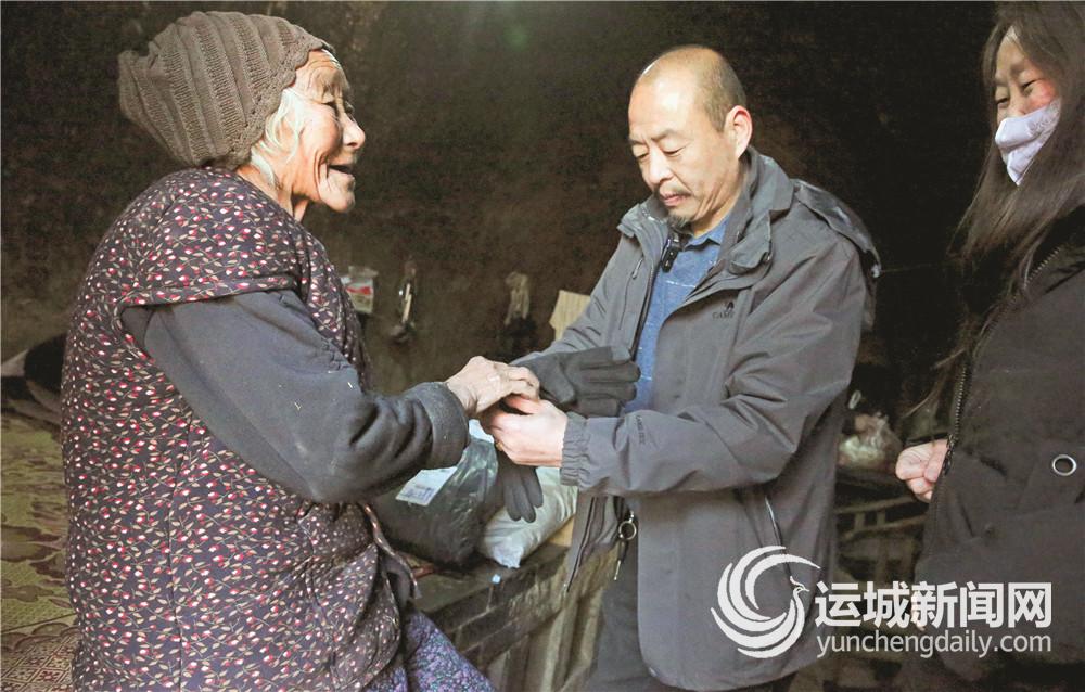 1月19日,稷山县几位爱心人士来到该县太阳乡上王尹村,看望93岁独居老人秦大娘,并为老人送去棉衣、棉裤、手套、鸡蛋等物品,让老人在寒冷的冬天感受到社会的关爱,欢欢喜喜过新年。