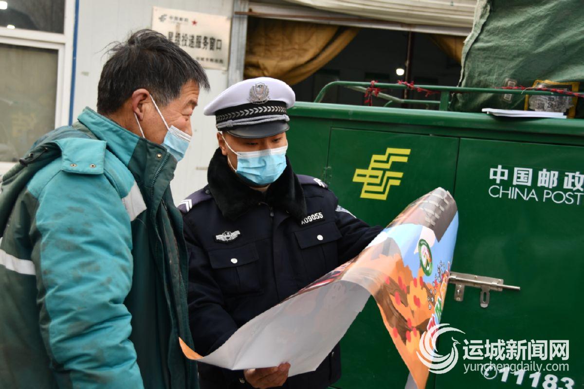 1月22日,夏县交警大队民警走进中国邮政集团公司夏县分公司开展交通安全宣传活动。