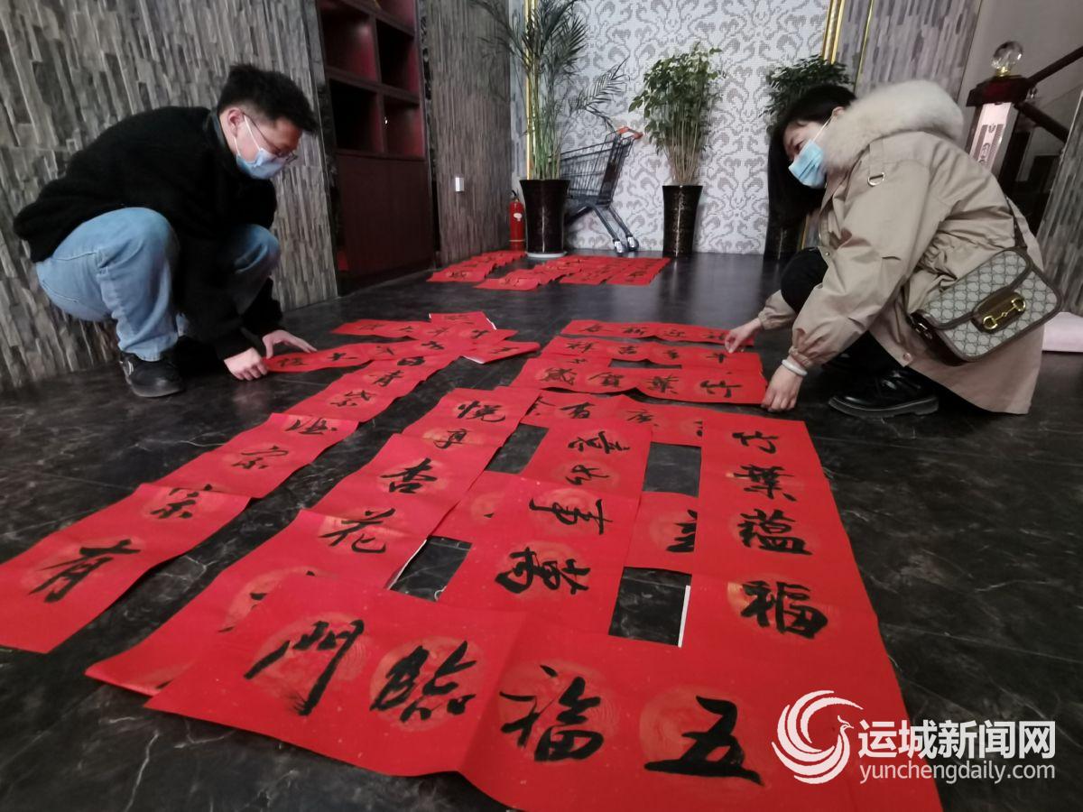 当天一大早,书法家就挥毫泼墨,投入创作。一副副喜庆的春联寄托着书法家对新年的美好祝愿,受到行人的青睐。