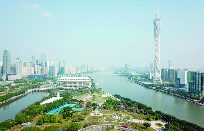 广州珠江两岸景观(2019年3月3日摄,无人机照片) 新华社记者 邓 华 摄