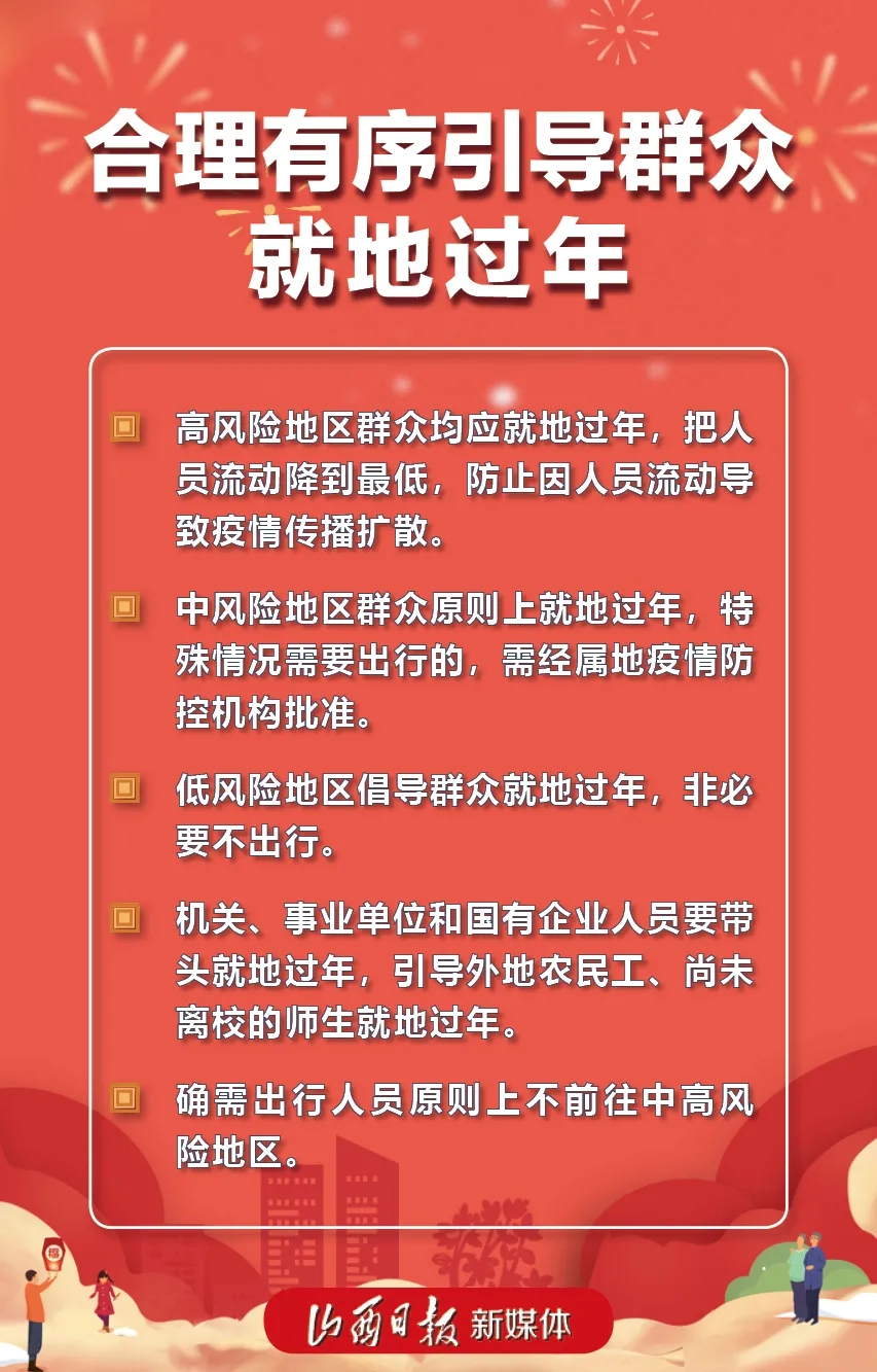 当前,境外新冠肺炎疫情持续蔓延,我国局部地区聚集性疫情和零星散发病例不断出现。中共中央办公厅、国务院办公厅印发《关于做好人民群众就地过年服务保障工作的通知》,提倡春节假期非必要不流动,有利于减少疫情传播风险。