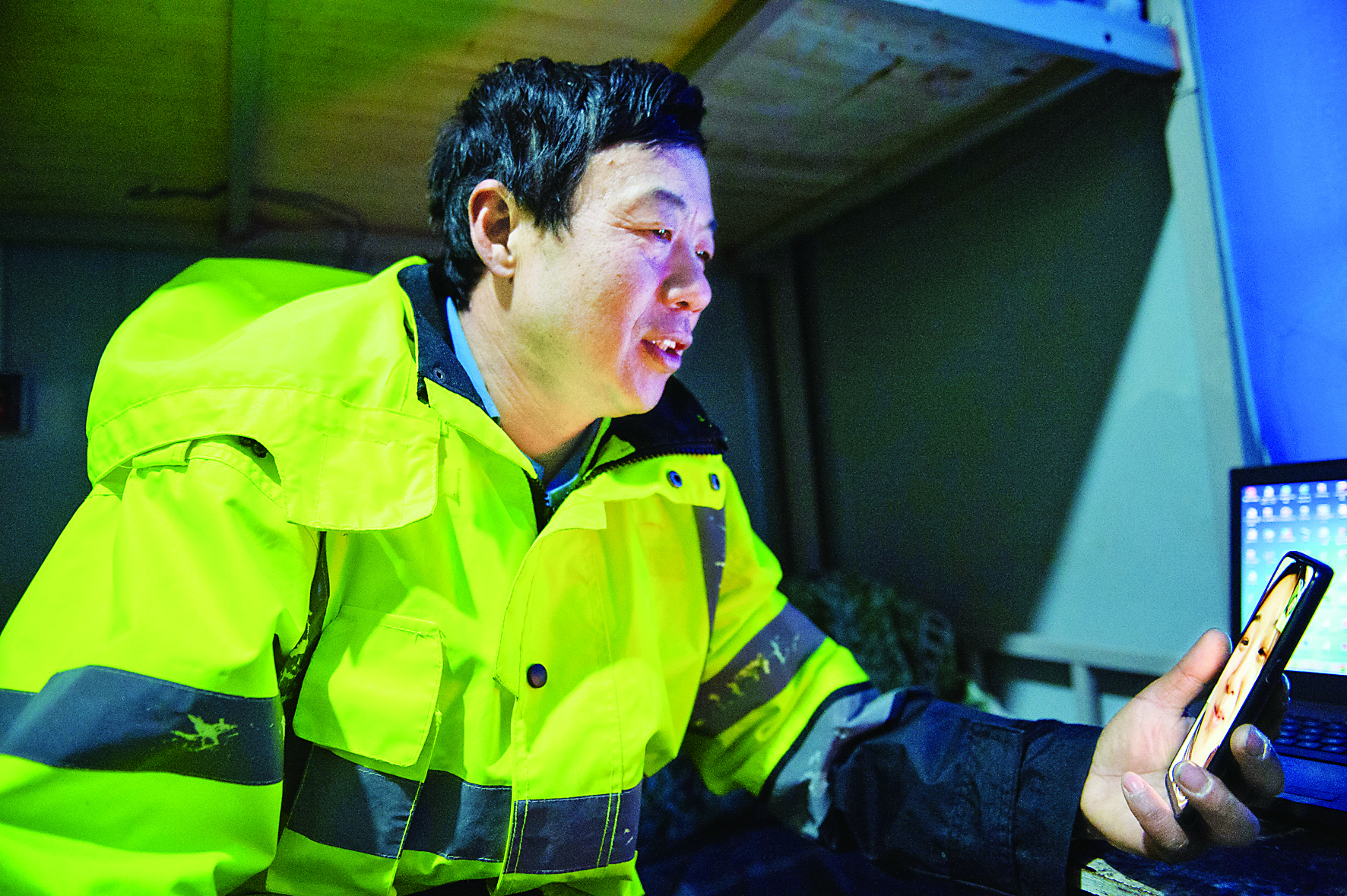 1月28日,赵耀均在工地宿舍和远在四川的女儿进行视频通话。