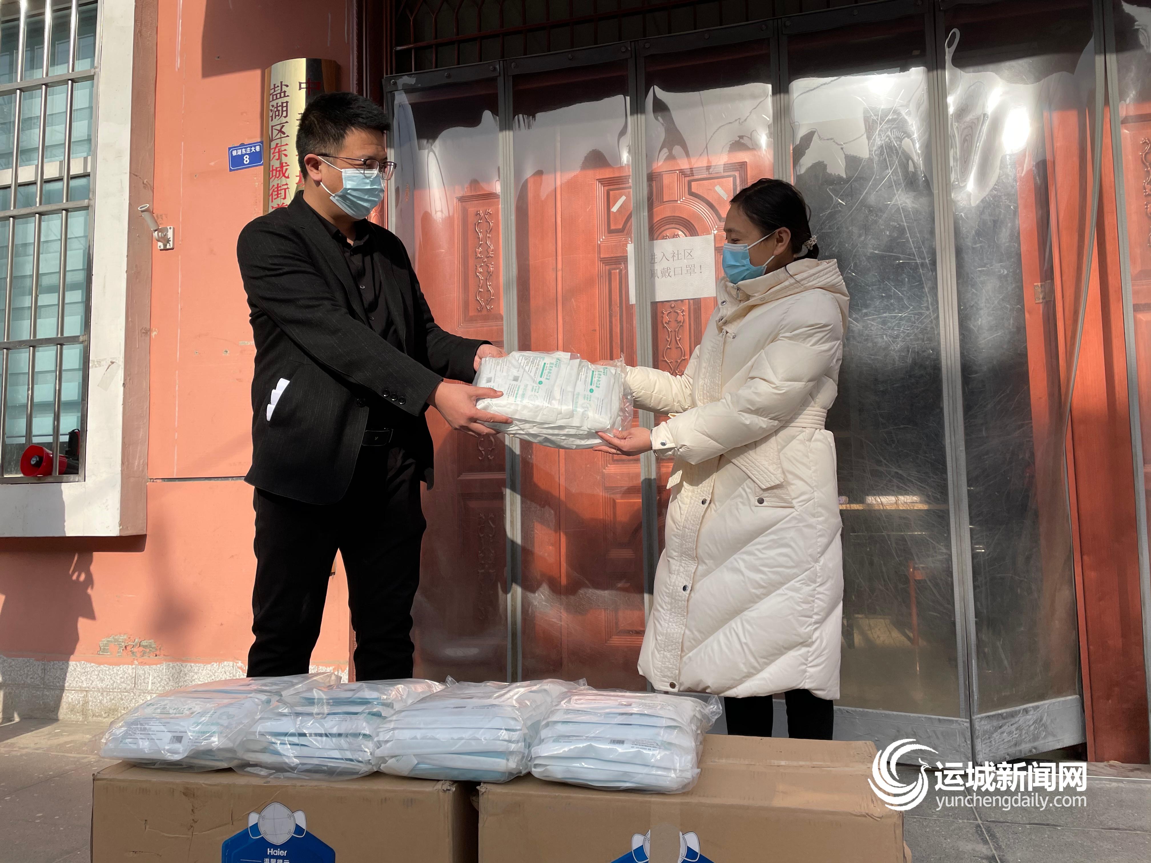 运城晚报讯(记者 樊亚楠)1月29日,盐湖区辉博家电有限公司向盐湖区东城办鸿晋社区捐赠两箱医用口罩,用于支援一线的社区工作人员。
