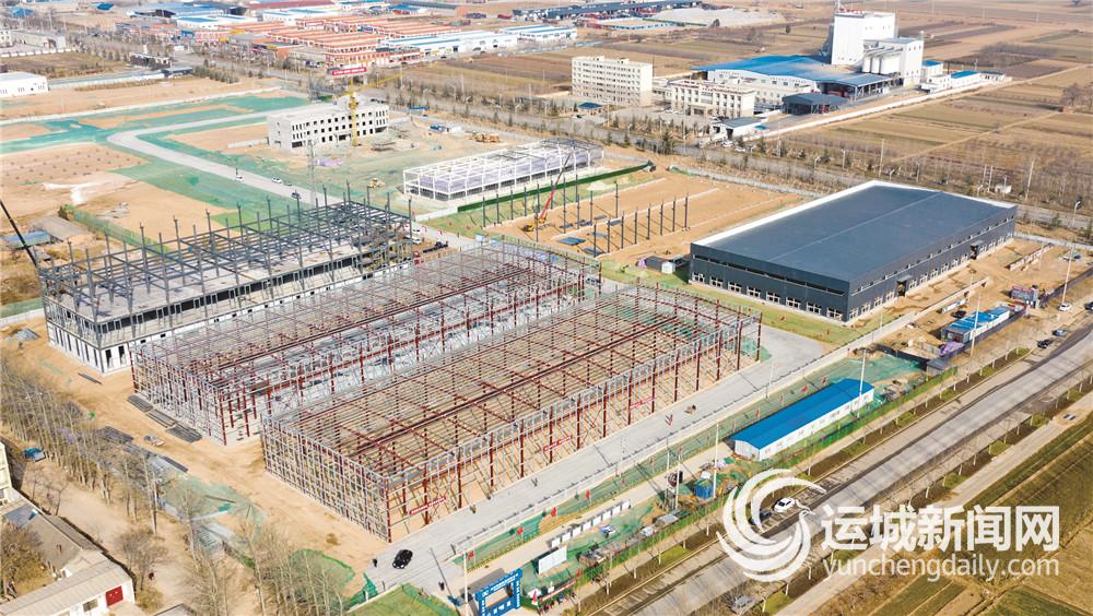 将视线转移至芮城的另一块建设工地上,在芮城新能源装备制造产业园中,一排排标准化厂房正拔地而起。