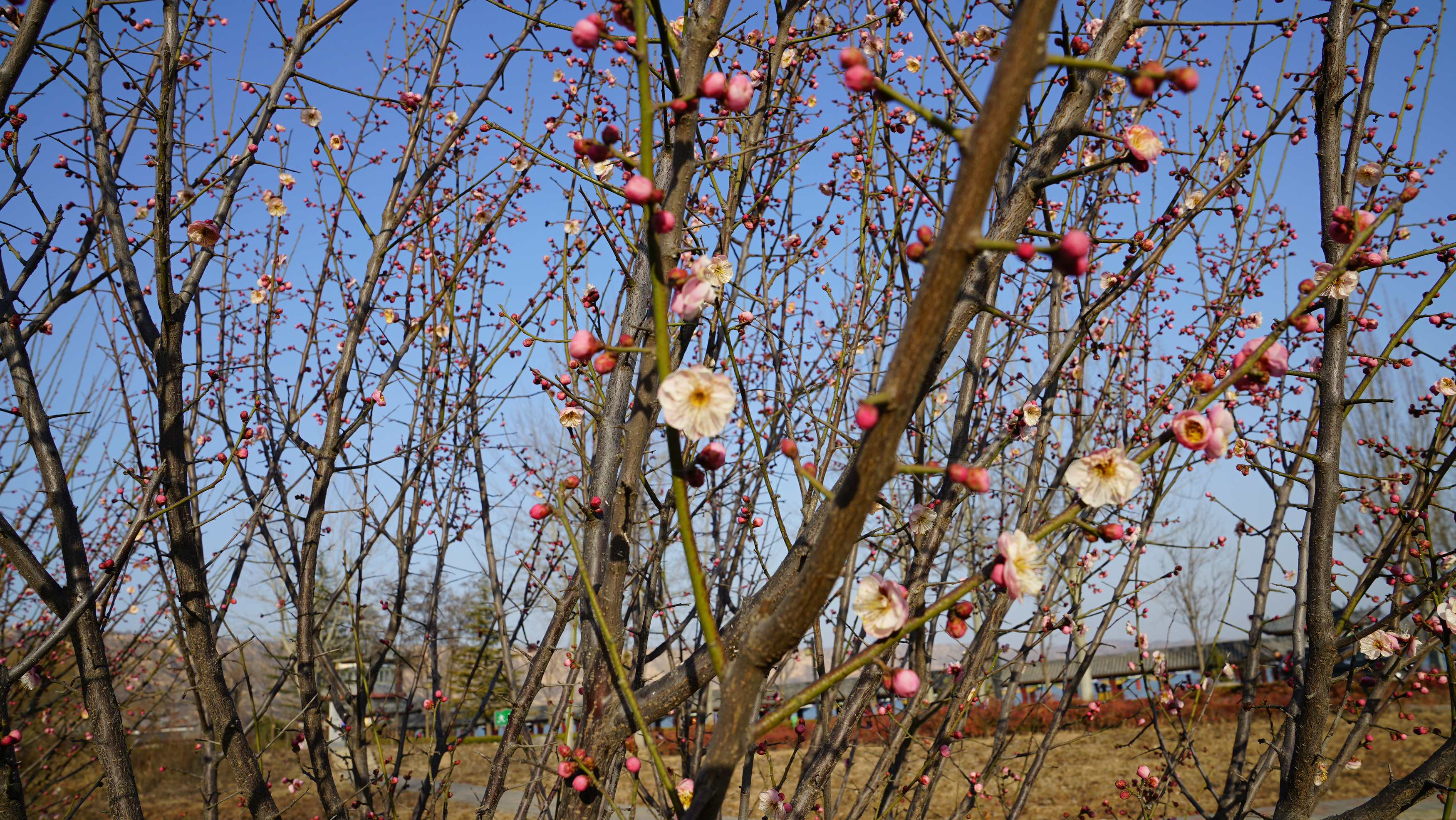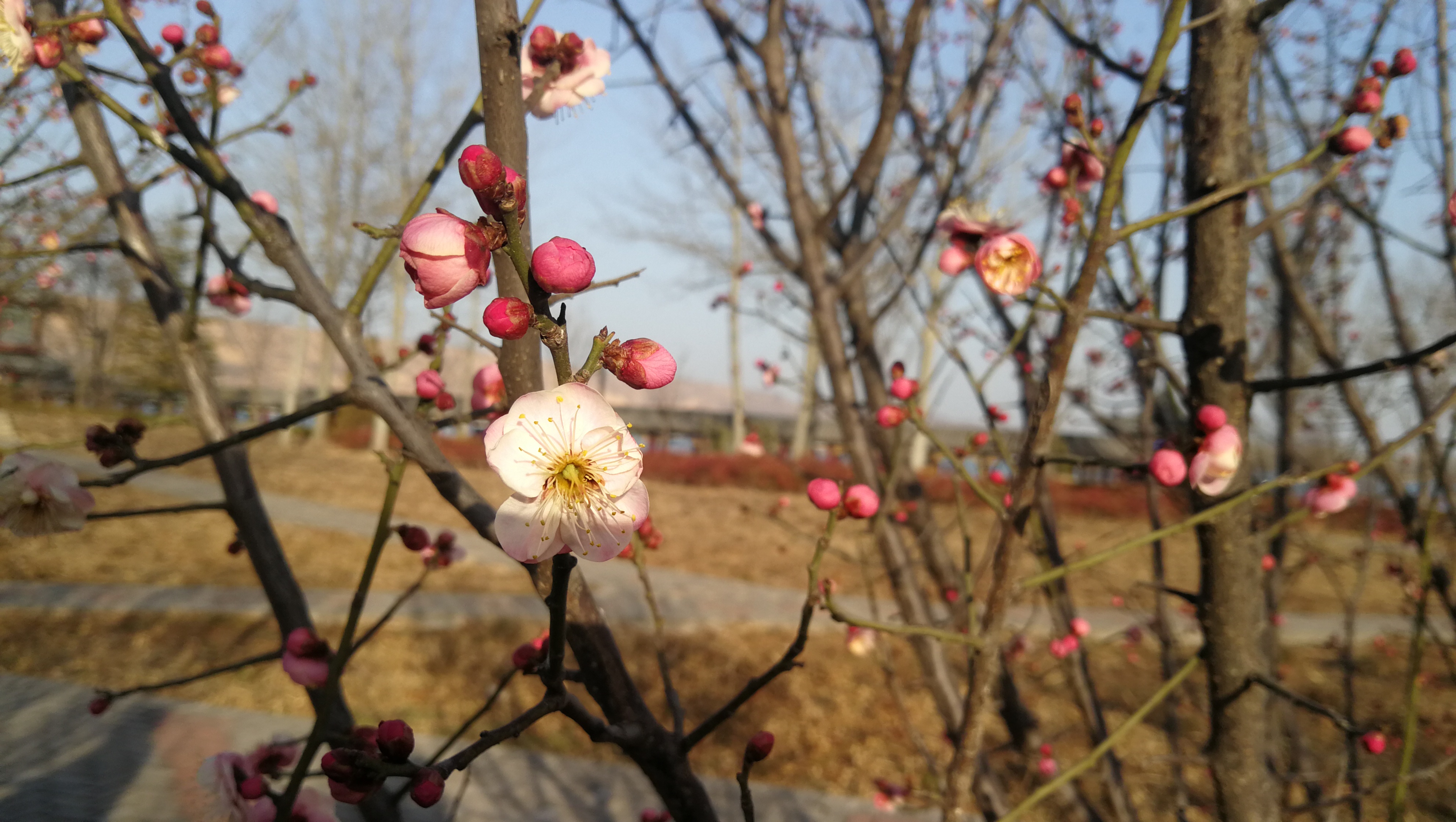▲2月1日在芮城县圣天湖梅花园内拍摄的梅花。