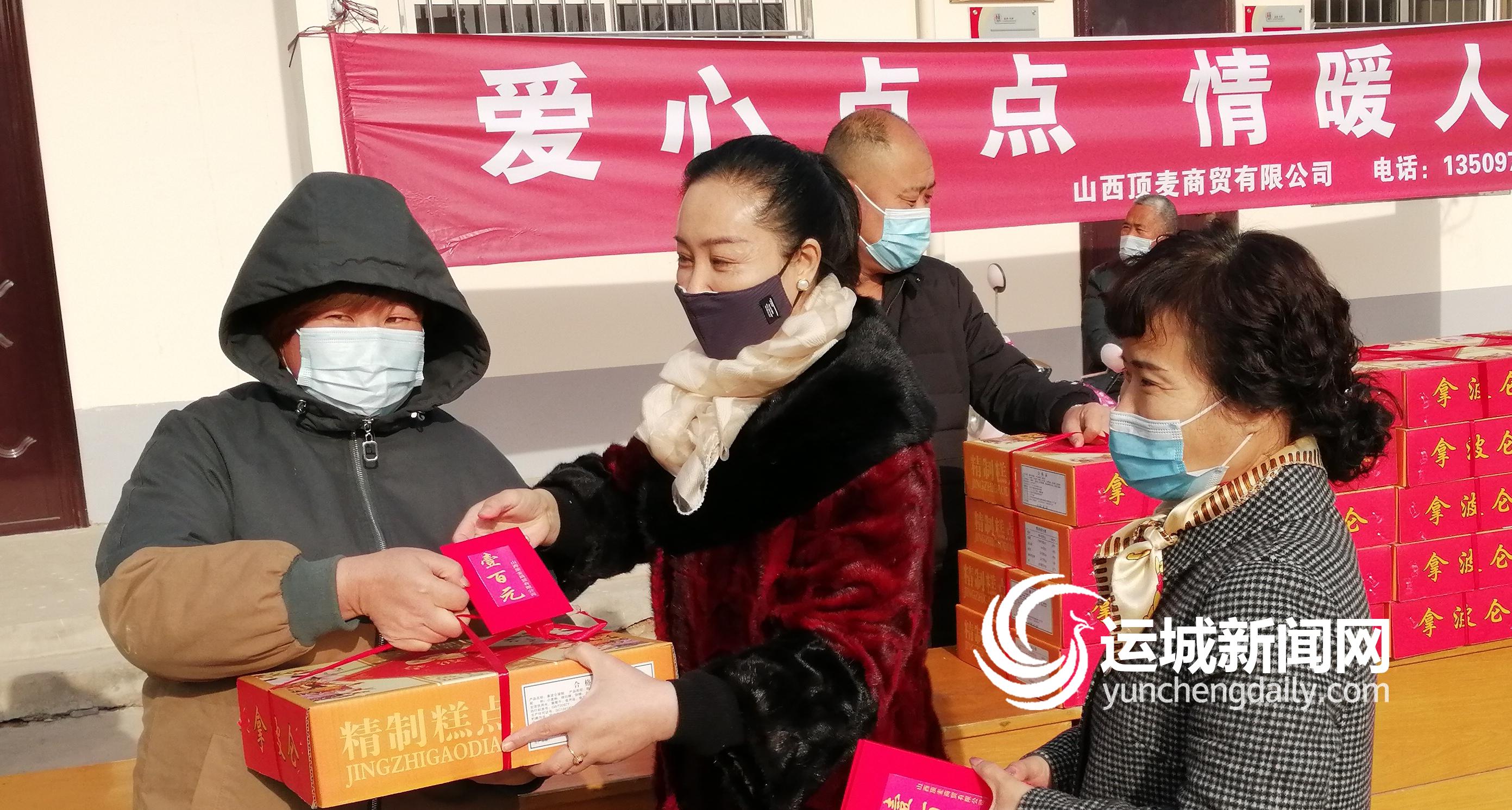 1月31日,山西顶麦商贸有限公司总经理王霞一行赴盐湖区东郭镇开展节前慰问活动。