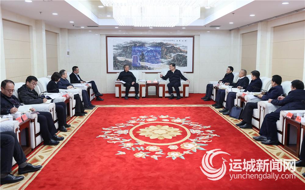 本报讯(记者 王文军)2月2日下午,市委书记丁小强,市委副书记、市长储祥好与来我市调研考察的国家开发银行山西省分行党委书记、行长郭振兴一行座谈,双方就进一步加强政银合作、支持项目建设、加大信贷支持力度等进行深入沟通,达成合作共识。市委常委、常务副市长陈杰参加座谈。