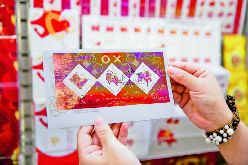 ▲2月2日,一名顾客在澳大利亚悉尼一家邮局展示牛年生肖邮票和纪念币。为庆祝中国农历牛年的到来,澳大利亚邮政局日前推出牛年生肖邮票和纪念币,经典的红金配色、充满浓郁中国风的设计元素,甫一推出就迎来热销。 新华社记者 白雪飞 摄