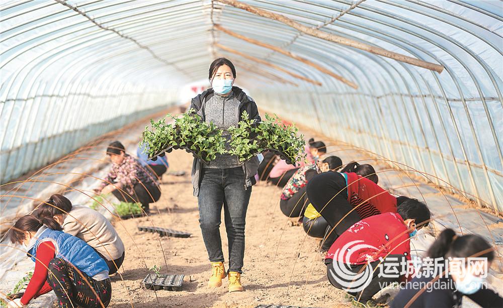 2月4日,永济市虞乡镇雷家庄村村民张武康的西瓜大棚里,村民抓住首茬西瓜栽植最佳时机,开展栽秧、施肥等工作,力争西瓜上市卖个好价钱。