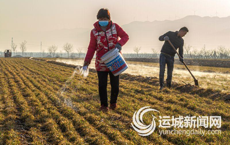 永济市卿头、虞乡等乡镇是该市的小麦主产区。近日,当地农民抓住初春小麦返青的有利时机,对小麦进行施肥、浇灌,确保小麦后期长势、灌浆良好。 特约摄影 姜 桦 吕向前 摄