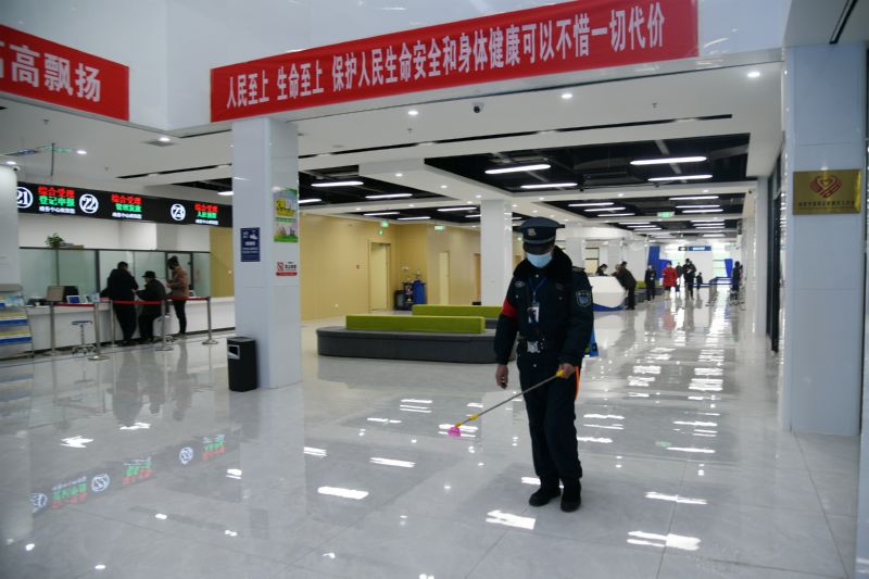 2月7日,闻喜县政务服务中心志愿者服务团队志愿者在该县政务服务大厅进行消毒消杀。志愿者严格按照消杀作业操作规范要求,采用“地毯式”消杀方式,对接待区、工作区、卫生间、楼道等重点区域进行了全面消毒,为前来办事的群众提供安全健康的环境。 特约摄影 温徐旺 摄
