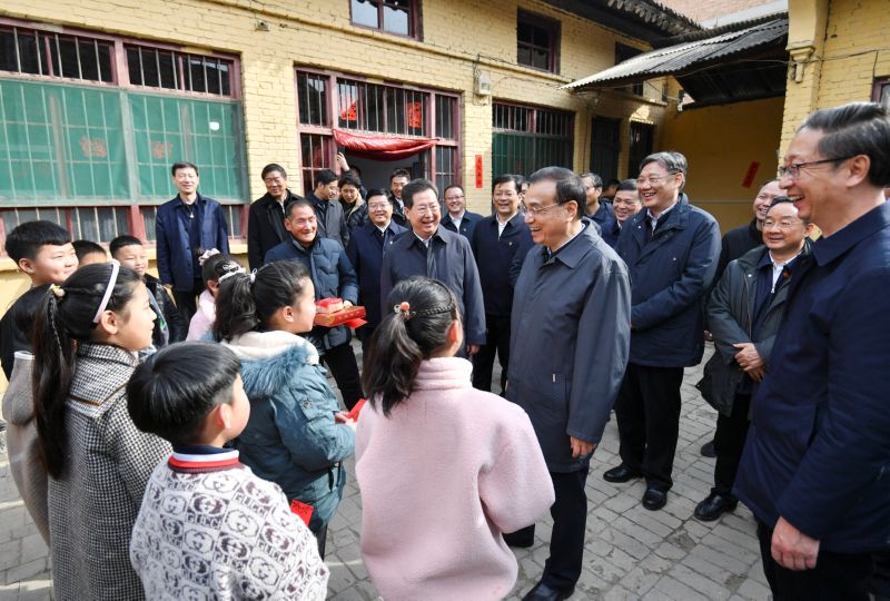 2月7日,春节前夕,中共中央政治局常委、国务院总理李克强在山西运城考察。这是李克强在夏县庙前镇吴村了解村里孩子的上学情况。 新华社记者 殷博古 摄