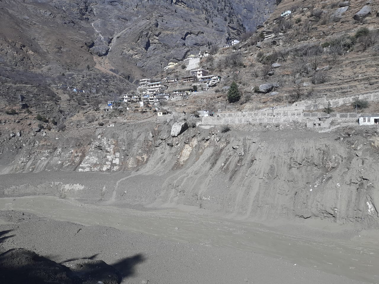 ▲这是因洪水受损的水电站附近的灾害景象(2月7日摄)。当日,印度北部北阿肯德邦发生冰川断裂引发洪水,100人至150人失踪。冰川断裂坠河后引发的洪水冲毁了一座水电站和河岸边的部分房屋,一些在附近施工的工人和当地居民失踪。 新华社发