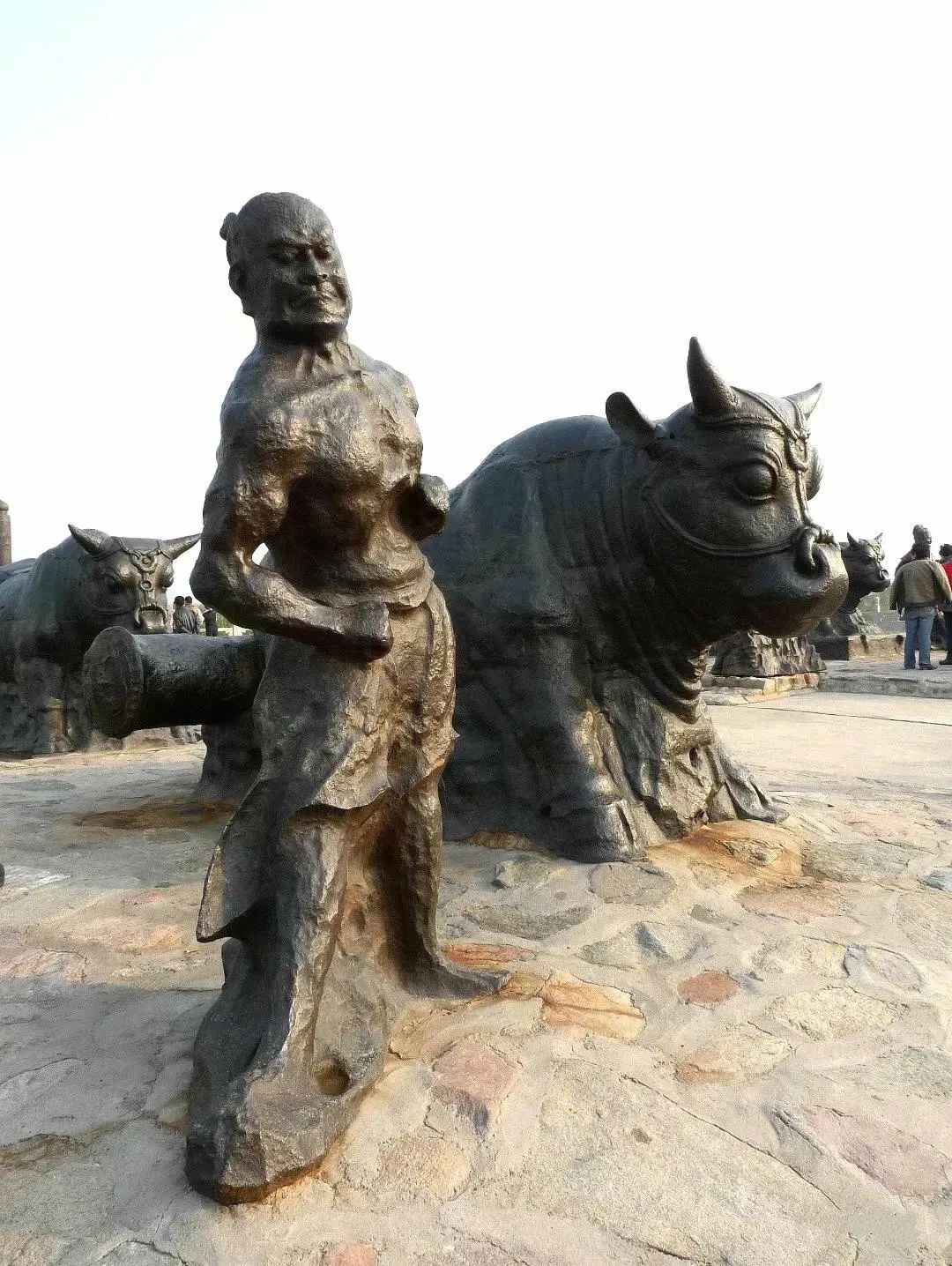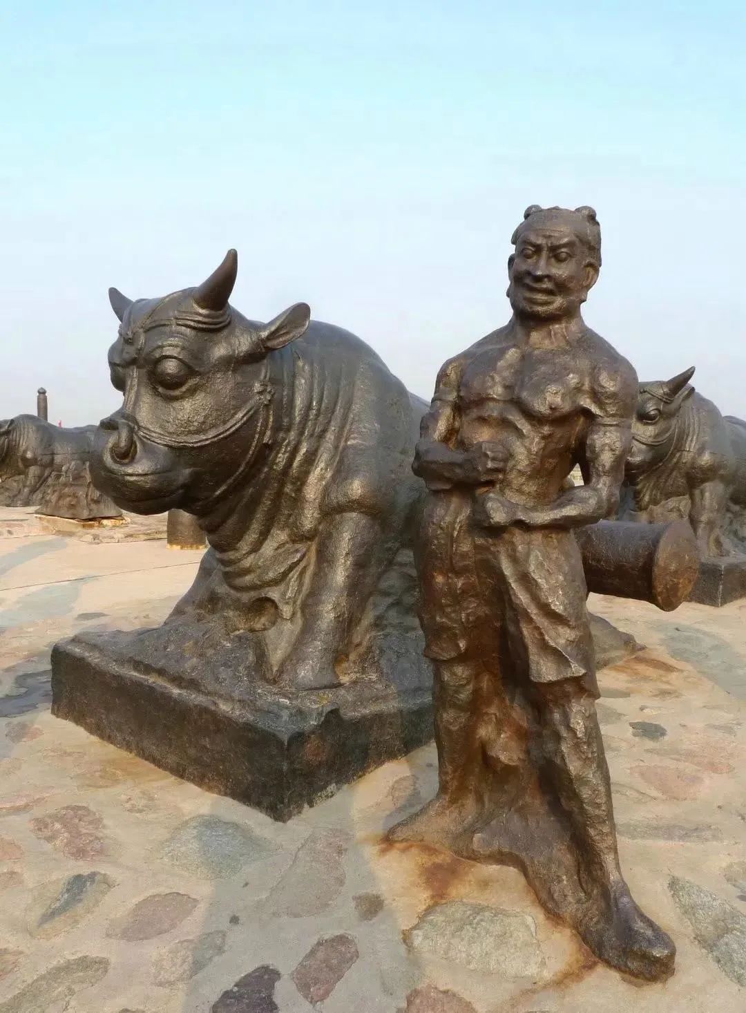 史书记载:“河两岸开东西门,各造铁牛四,铁人四。”由此可见,铁牛、铁人应该各8个,现有4个铁人、4个铁牛已经打捞上来,其余的还在黄河里。
