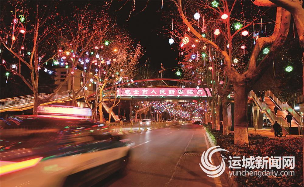 夜幕降临,华灯初上,夜色中的运城流光溢彩,处处洋溢着浓厚的节日氛围。