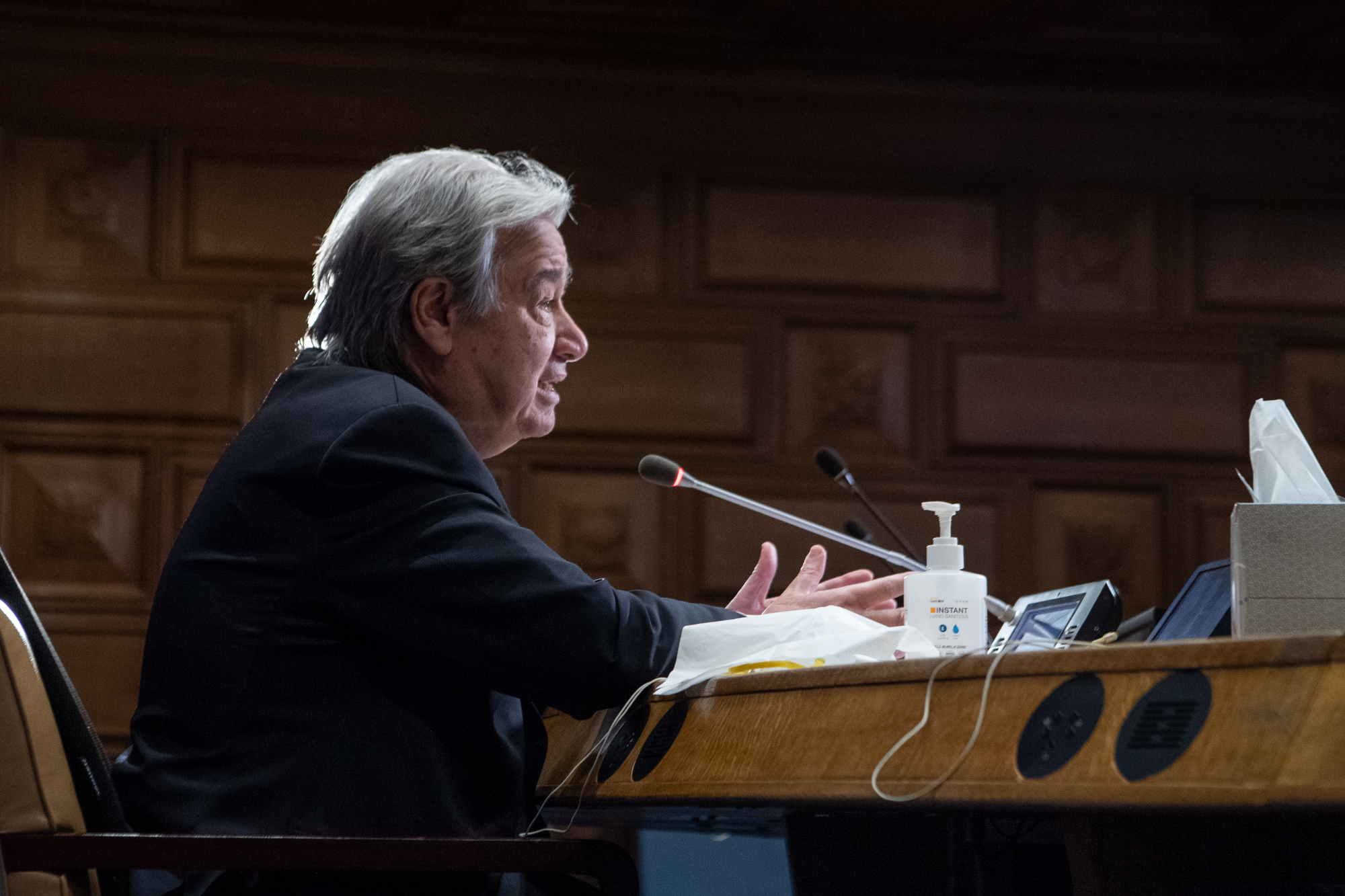 ▲2月8日,联合国秘书长古特雷斯在与第26届联合国气候变化大会主席,英国商务、能源与产业战略大臣阿洛克·夏尔马(不在画面中)共同出席的大会筹备情况视频通报会上说,这次气候变化大会是世界努力避免气候灾难的里程碑,2021年也成为“对抗气候变化关键的一年”。新华社发