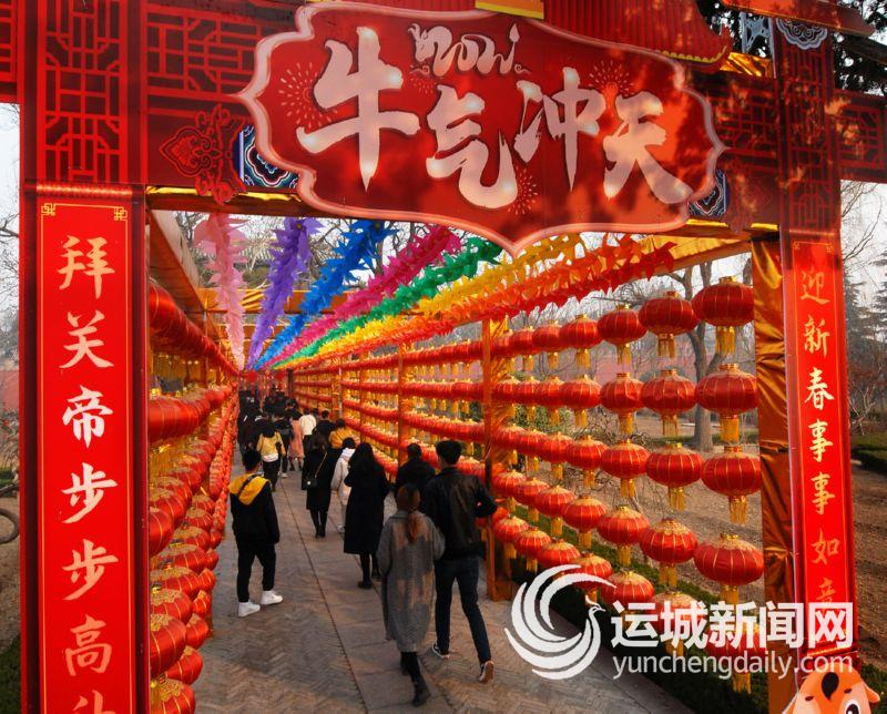 解州关帝庙景区张灯结彩,营造了浓厚的过年氛围。