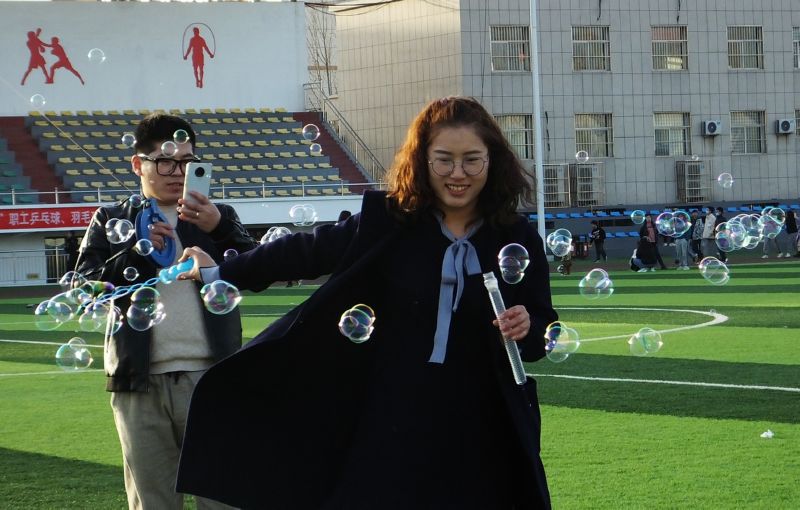 2月16日,市民在新绛县体育场踏青吹泡泡,开心健身过大年。 当日,暖阳高照,人们纷纷走出家门踏青享春光,跳舞迎新春。 特约摄影 高新生