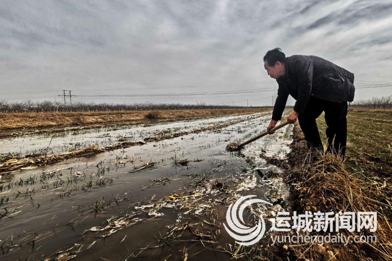 ▲2月18日,临猗县孙吉镇蔡高村村民相跃进在对小麦进行春浇。