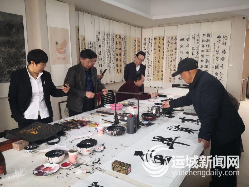 2月18日,我市书画家们在运城市酒文化研究会挥毫泼墨,书写新春祝福。