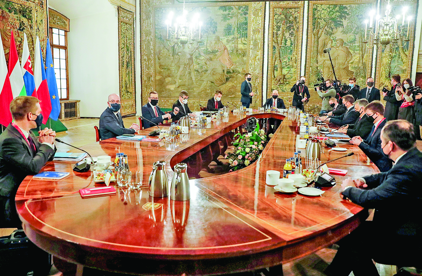 ▲2月17日,在波兰拍摄的维谢格拉德集团峰会现场。由波兰、匈牙利、捷克、斯洛伐克组成的维谢格拉德集团17日举行峰会,与会领导人重点讨论了抗击新冠疫情等问题。 新华社发