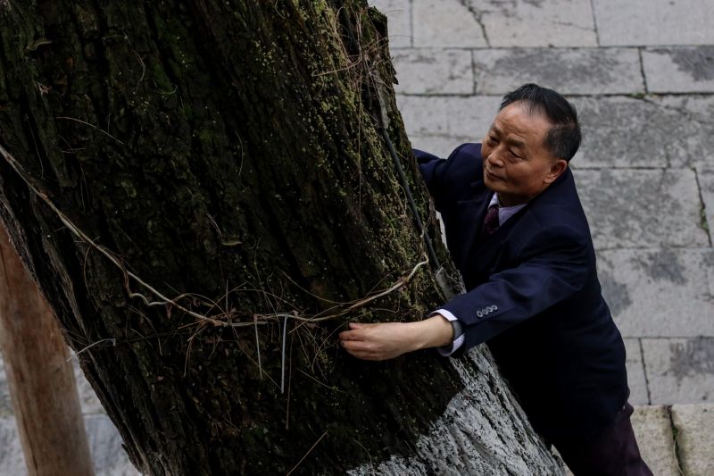 “这棵树是遵义会议纪念馆里唯一一个‘活着的文物’了。”67岁的“树医生”张本光说。