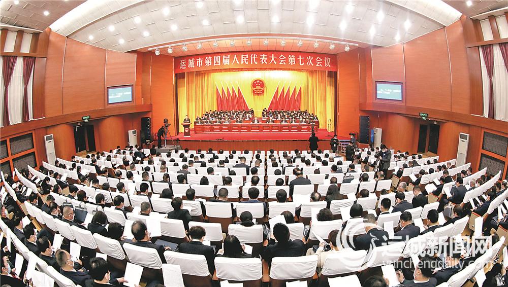 2月23日,运城市第四届人民代表大会第七次会议隆重开幕。图为会议现场。 记者 雷哲侠 闫 鑫 摄