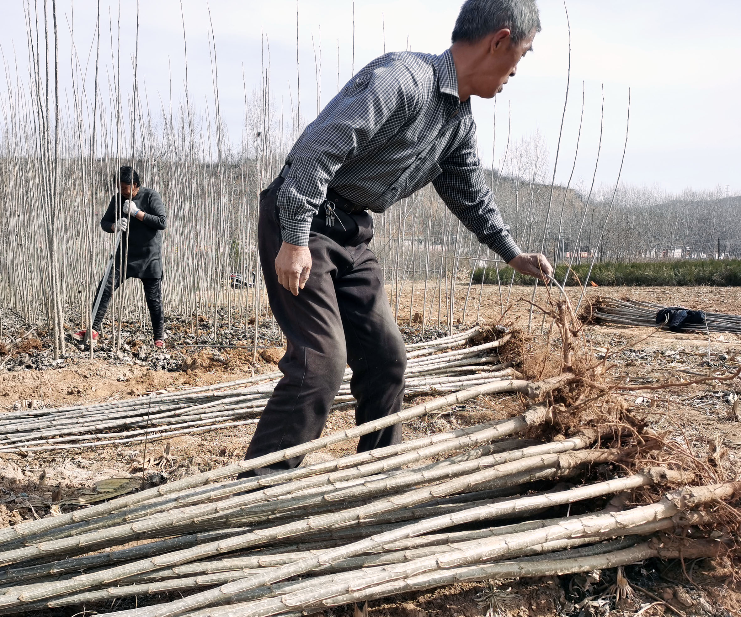 有的农户全家老少齐出动,一边联系客户,一边刨挖苗木。据当地村民介绍,近日,全村共销售速生杨苗木6万多株,收入30多万元。