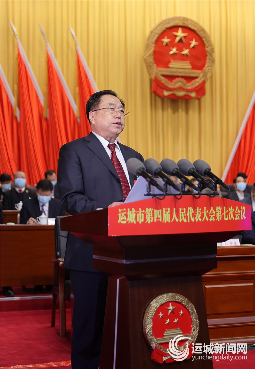 安雅文向大会作市人大常委会工作报告。安雅文说,2020年,是全市人民众志成城夺取抗疫斗争重大成果、推动运城高质量转型发展、实现“十三五”圆满收官的重要一年。一年来,市人大常委会坚持以习近平新时代中国特色社会主义思想为指导,深入学习贯彻习近平法治思想、党的十九届五中全会精神,在中共运城市委的坚强领导下,强化使命担当,认真履行法定职责,共召开党组会议24次、主任会议21次、常委会会议9次,听取审议“一府两院”专项工作报告21项,开展执法检查7项、专题询问2次,备案审查规范性文件14件,依法作出决议决定6项,组织人大代表集中视察4次,为统筹推进疫情防控和经济社会发展、决战脱贫攻坚、决胜全面建成小康社会发挥了应有的作用。一年来,市人大常委会坚持党的领导,确保市委贯彻落实党中央大政方针的工作要求落地生根、开花结果;坚持立法为民,积极回应人民群众不断增长的法治需求、法治期待;坚持服务大局,全力促进经济社会高质量发展、民生福祉不断增进;坚持服务保障,充分彰显人大代表建功新时代的新作为、新风采;坚持政治统领,全力打造自觉担负新时代新使命的工作机关、代表机关。