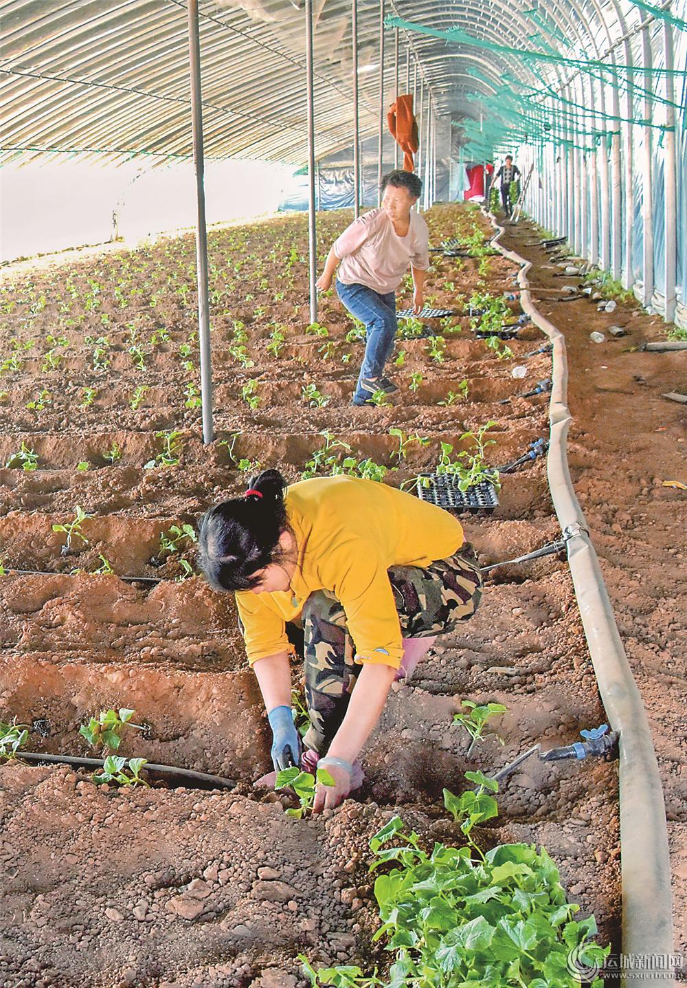 2月22日,垣曲县王茅镇柳庄村种植户在大棚内移栽乳瓜 特约摄影 崔松良 摄