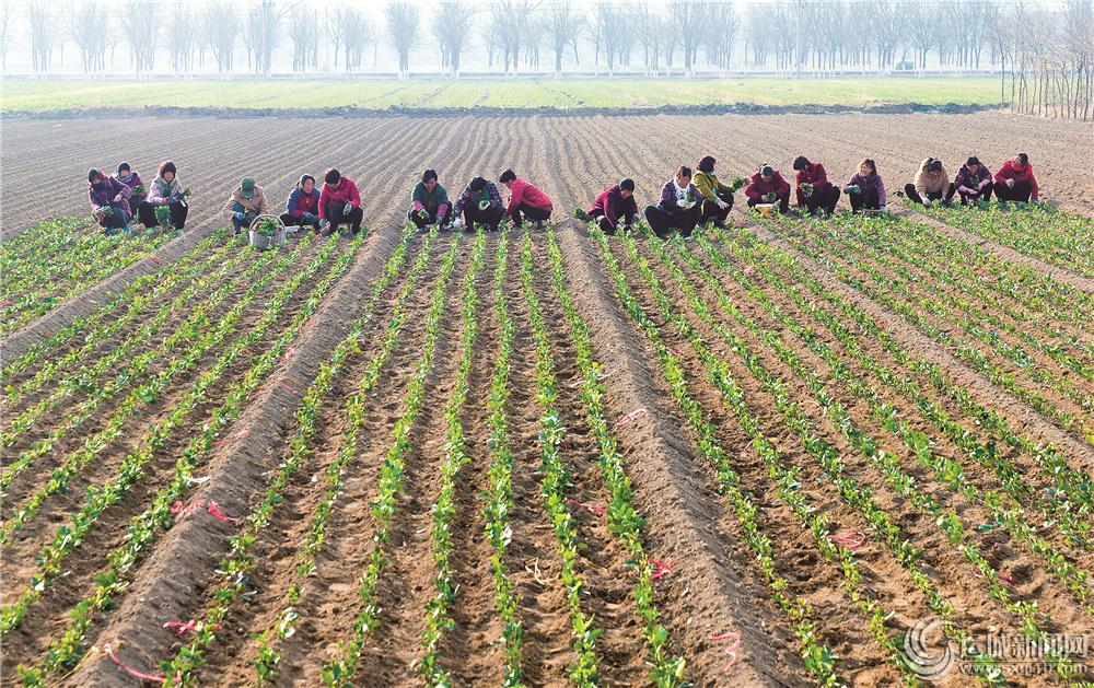 2月22日,闻喜县桐城镇下邱村村民正在收割蔬菜 特约摄影 温徐旺 摄