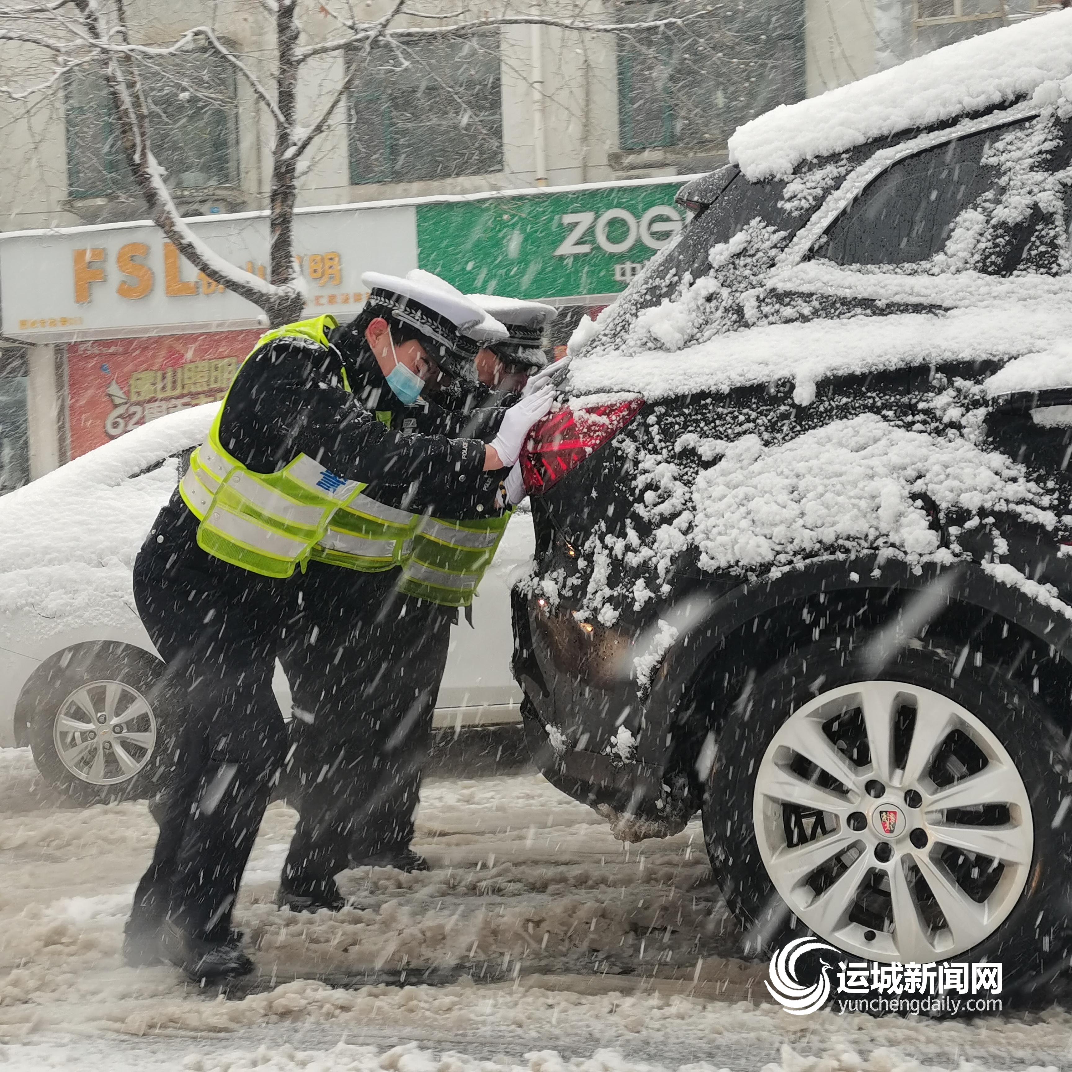 ▲垣曲交警帮助滞留车辆脱困