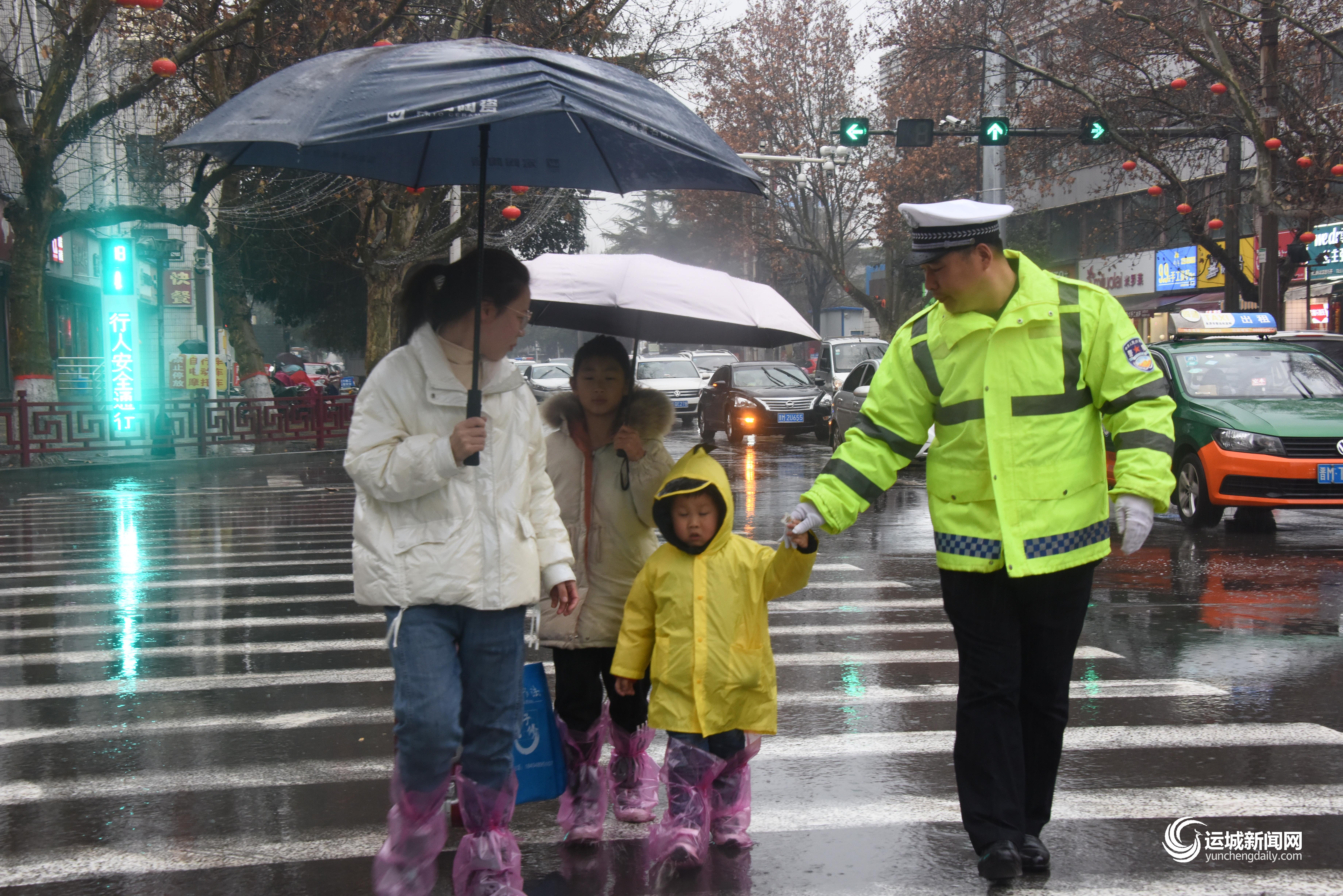 ▲永济交警护送行人过马路