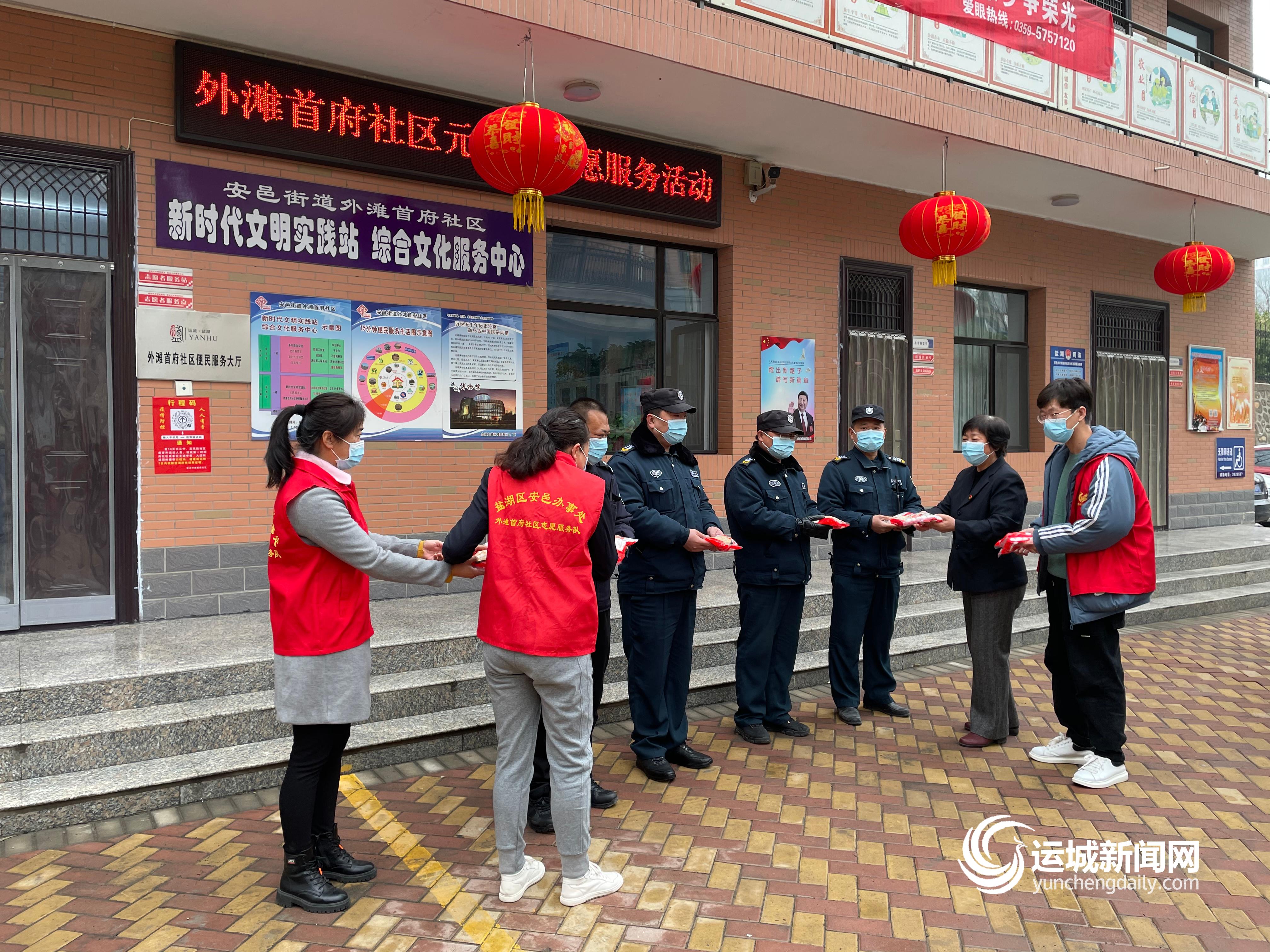 运城晚报讯(记者 樊亚楠)2月25日,盐湖区安邑办外滩首府社区开展了元宵节志愿服务活动,慰问辖区各小区内的一线安保人员,感谢他们坚守在防疫一线。