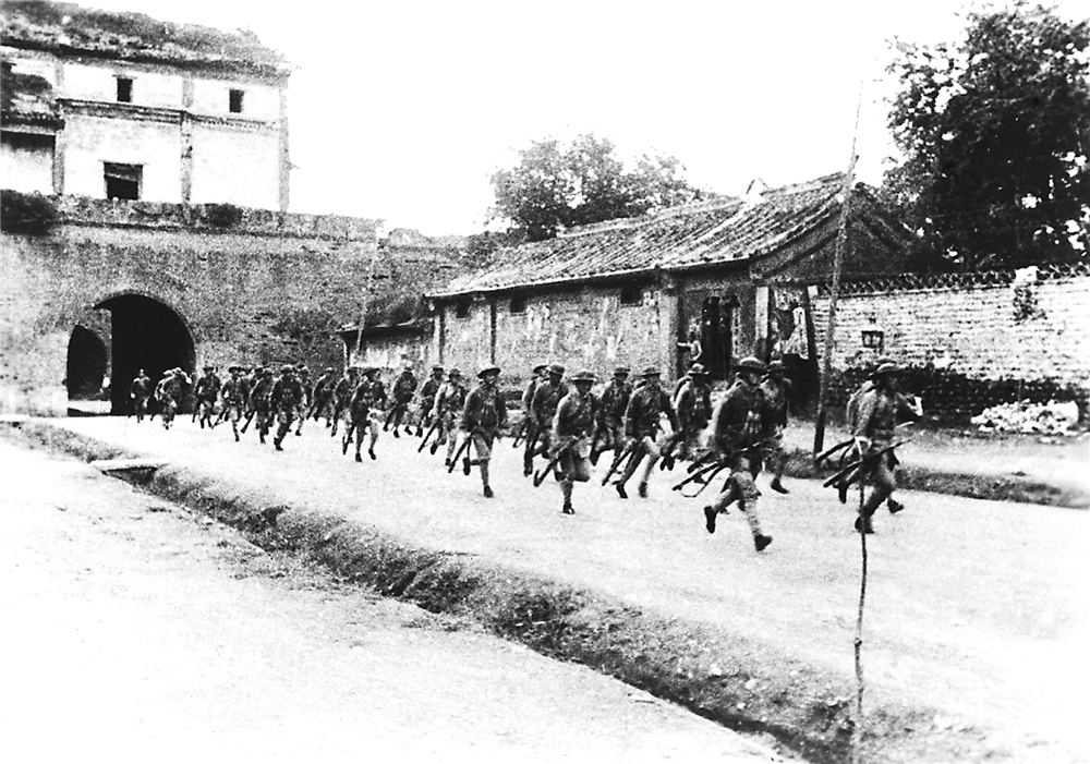 这是驻守宛平城中国军队奔赴卢沟桥抵抗日军(资料照片) 新华社发
