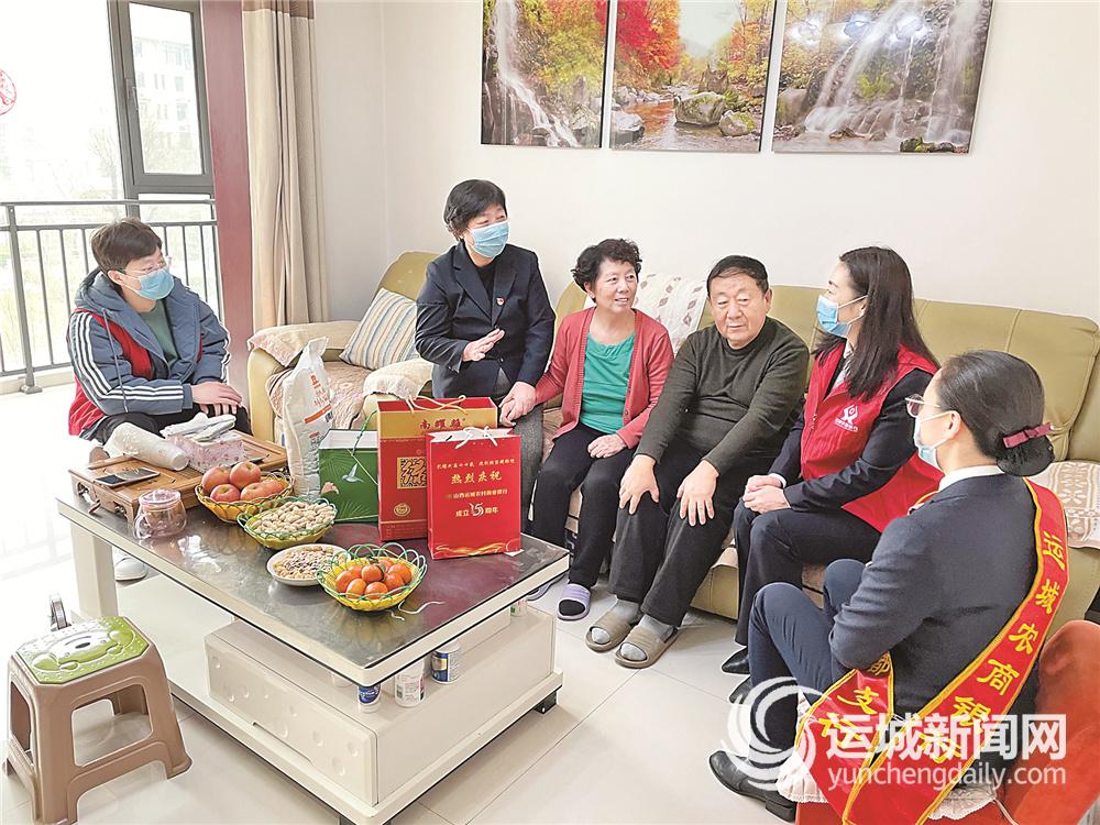 运城晚报讯(记者 樊亚楠)2月25日,盐湖区安邑办外滩首府社区联合运城农商银行信合名都支行,开展“走访慰问老党员、不忘初心送温暖”活动。