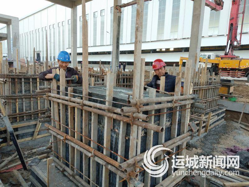 同一时刻,在稷山经济技术开发区西社工业园区内,梅山湖超高功率石墨电极项目建设工地上,工人正在进行紧张的投产准备。