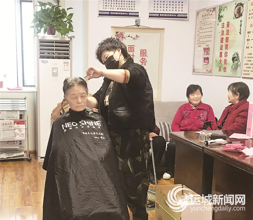 当天上午,禹都花园小区30多位60岁以上的老人陆续来到禹都花园社区办公室排队理发。理发师茹水娟发挥自己的技艺,利用手中飞舞的剪刀,为老人们修剪头发。虽没有花哨的造型,但她“剪”出了老年人的笑容,也“剪”出了对老年人的关爱。