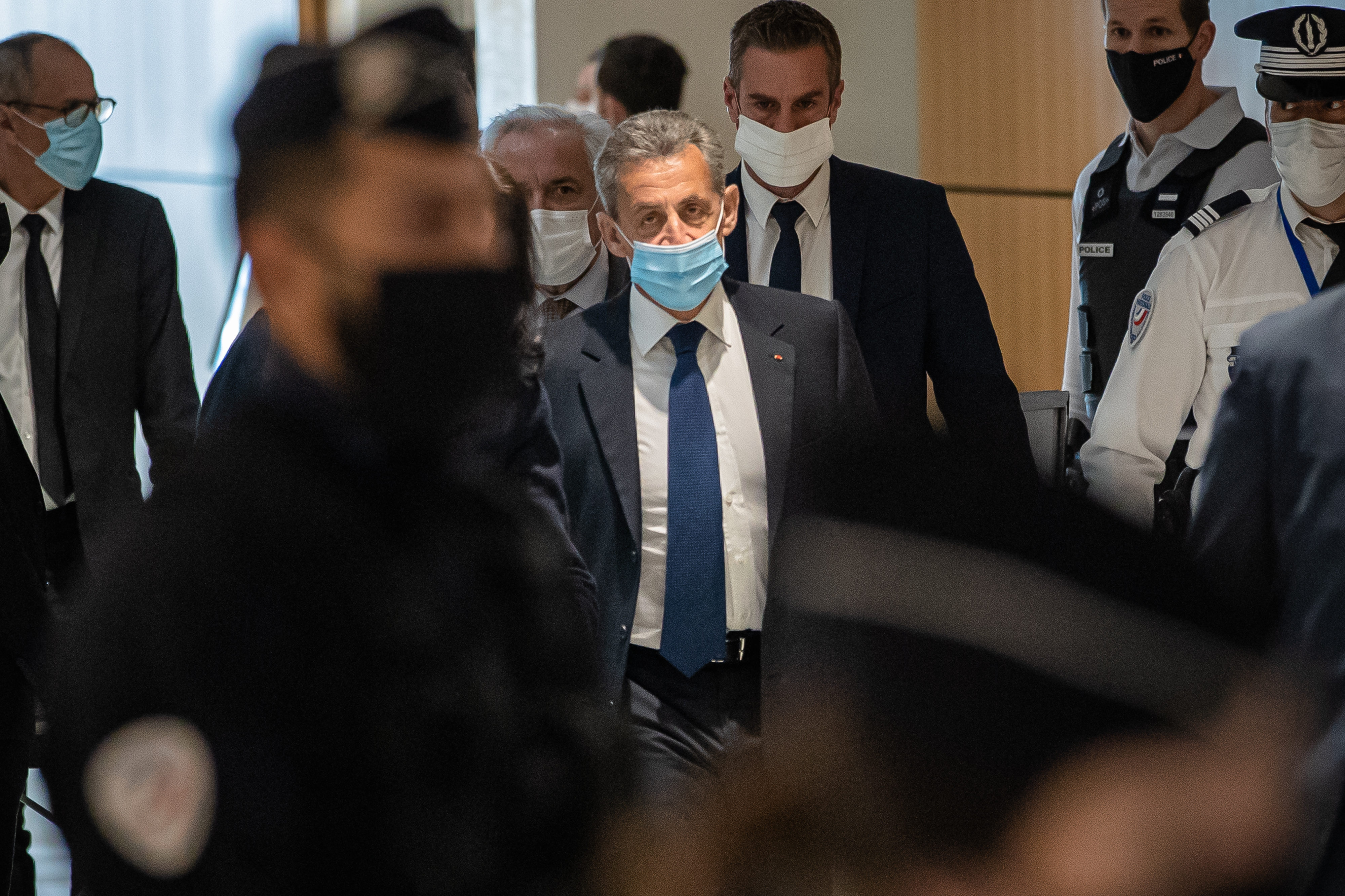 ▲3月1日,法国前总统萨科齐(中)抵达巴黎一家法院。法国巴黎轻罪法院当天裁定萨科齐“腐败”和“以权谋私”罪名成立,判处其3年有期徒刑,其中包括1年实刑。 新华社发