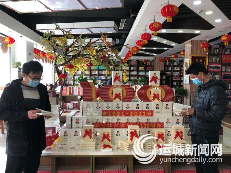 3月1日,河津市新华书店,读者在图书展台前阅读《论中国共产党历史》一书。