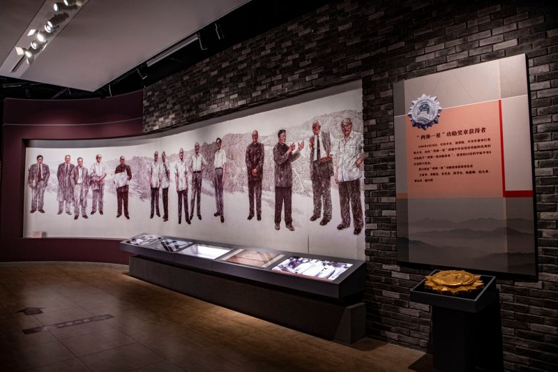 西南联大博物馆展出的“两弹一星”功勋奖章获得者画像(2月9日摄)