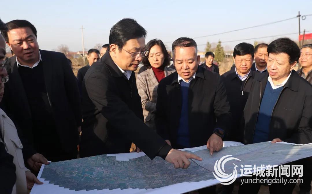 在位于蒲州镇孟盟桥村的尊村引黄灌区姚温片区水源置换工程建设现场,丁小强仔细察看施工图,了解工程进度、预期效果、渠道沿线绿化等工作。他要求,要高标准建设引黄灌溉渠道,确保工程质量和施工安全,加强配水工作人员作风建设,让黄河水惠及更多农民。
