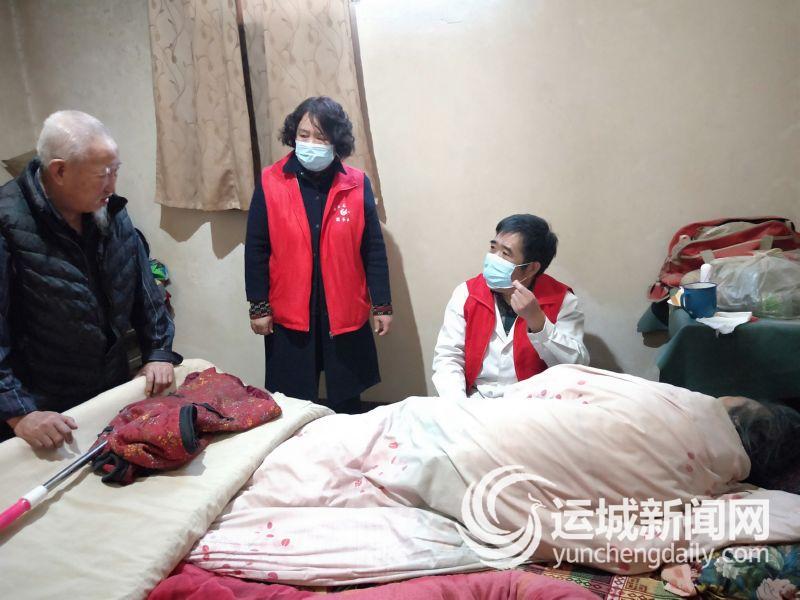 当天,志愿者来到辖区低保户杨成群家,杨成群的老伴生病卧床已近半月,每天不思饮食,还常拉肚子。“儿女生活条件不好,我患有高血压,行走困难,不能带她去看病。”“那我们来得正是时候,让医生给你俩好好看看。”志愿者一边说,一边将杨成群老人扶坐在沙发上。医护人员为他测量血压后,又来到床前为杨成群的老伴把脉。随后,医生给她开了一剂中成药。杨成群连声感谢。